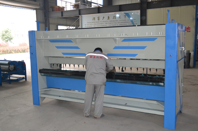 質(zhì)檢部師傅師傅正在對大棚保溫被絎縫機做出廠質(zhì)檢