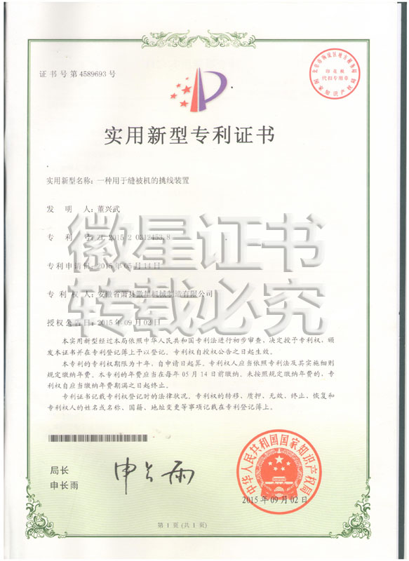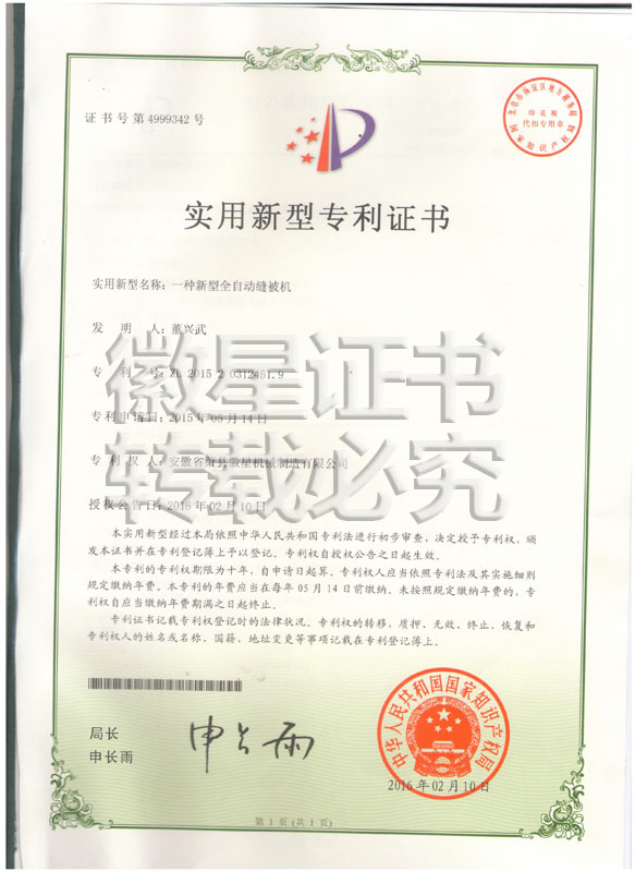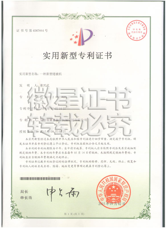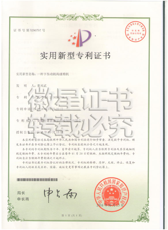 徽星人經(jīng)過20年的努力奮斗,經(jīng)過7000多個日日夜夜,在董興武先生的帶領(lǐng)下,打造優(yōu)質(zhì)品牌。徽星現(xiàn)已榮獲20多項國家專利,保證機器的質(zhì)量,認客戶朋友們用上了放心機器!