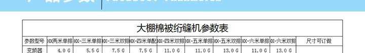 產品簡介:安徽省蕭縣徽星機械制造有限公司,已突破技術上的限制,獨立研發生產6米-8米型大棚被生產設備,領先國內同行棉被機器制造業縫制的寬度水平,在全國絕無第二家的大棚被生產設備,動力選用三項雙電機驅動,轉速可達140針/分鐘進行縫合,針距可調整到1-4公分,縫紉厚度可達到3-5公分,每平方米重量達8公斤。
