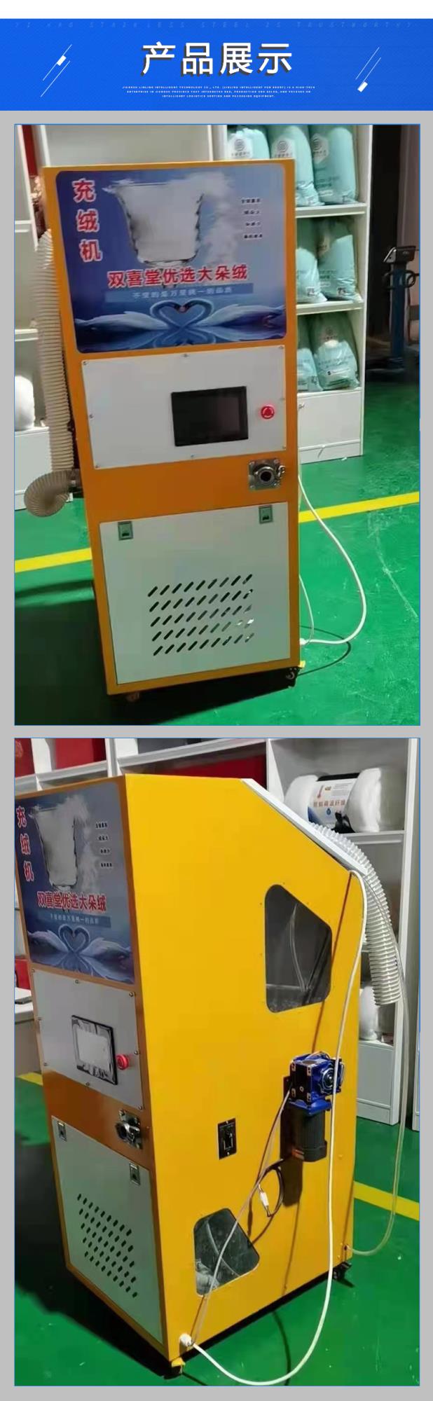 充絨機保持羽絨原油的柔軟性和彈性感。半自動操作,可根據特點調節充絨范圍,誤差小;操作簡單,節省人工成本,充絨在封閉箱內,確保生產現場環境整潔干凈。生產效率高,平均計量時間3-5秒。效率提高2倍以上,可靠性穩定性好。本設備可成功除掉充絨中80%的金屬,該機型100%有效的回收出口中的三絨,確保環境衛生。適合在商店作為羽絨被現充現賣設備。